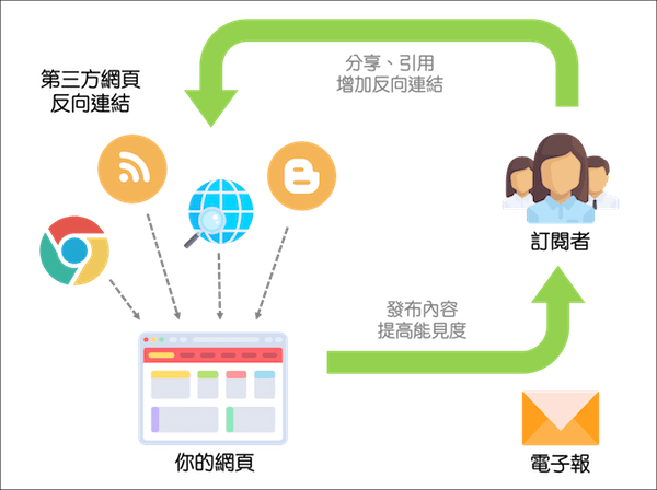 透過電子郵件營銷,當訂閱者分享和引用網(wǎng)站內容,增加反向鏈接的數(shù)量。
