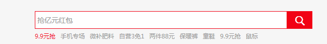 站內(nèi)搜索框設(shè)計時并不是只放上一個長條方框就可以了,還需要為搜索框配上一個有指向意義的按鈕,可以是文字也可以是圖片,讓用戶有意認的去點擊,這樣就可以對開始搜索這個操作有一個很直觀的感受。