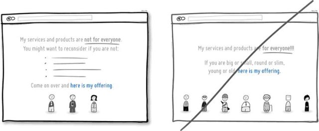描述或限制適合產(chǎn)品或服務(wù)的目標(biāo)族群,可以幫助網(wǎng)站找到更多相似特質(zhì)的使用者,也更具特色,同時(shí)讓使用者感到自己具獨(dú)特性。然而,使用這樣策略具有風(fēng)險(xiǎn),可能讓你的網(wǎng)站在短期內(nèi)失去一些潛在用戶(hù)。不過(guò),透明與誠(chéng)實(shí)才是建立與使用者之間信任的最佳方式。
