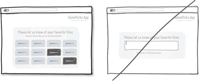 在頁面上提供一些線索可協(xié)助使用者喚起過去的經(jīng)驗,進而提供我們更多回饋;若毫無提示,使用者則需更多的時間深入回想,反而耗時或遺漏更多資訊,就如同選擇題較填充題更快完成般。